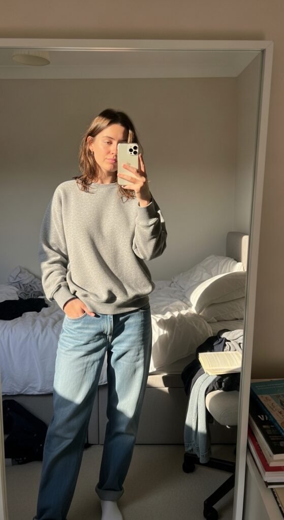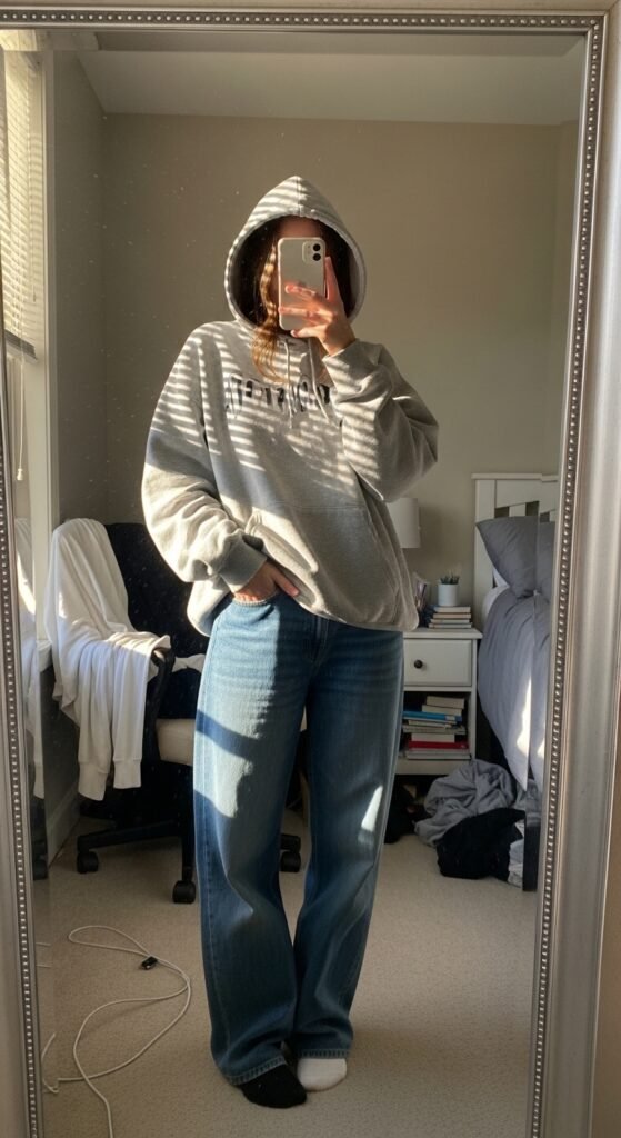 10. Sweatshirt + Baggy Jeans (Everyday Comfort) 🌿