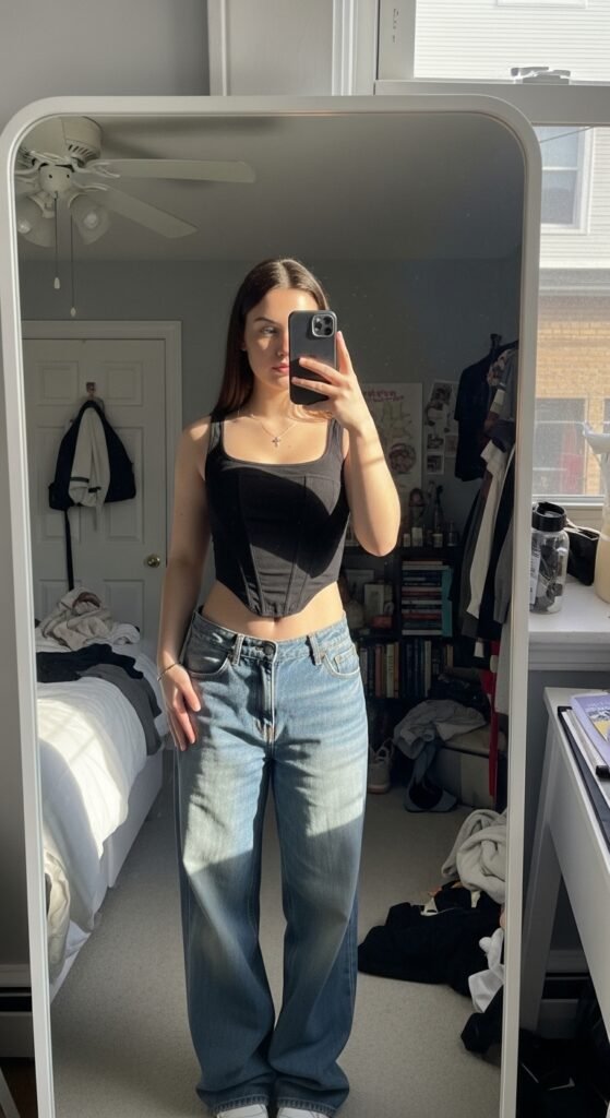 5. Corset Top + Baggy Jeans (My “Glow Up” Outfit) ✨