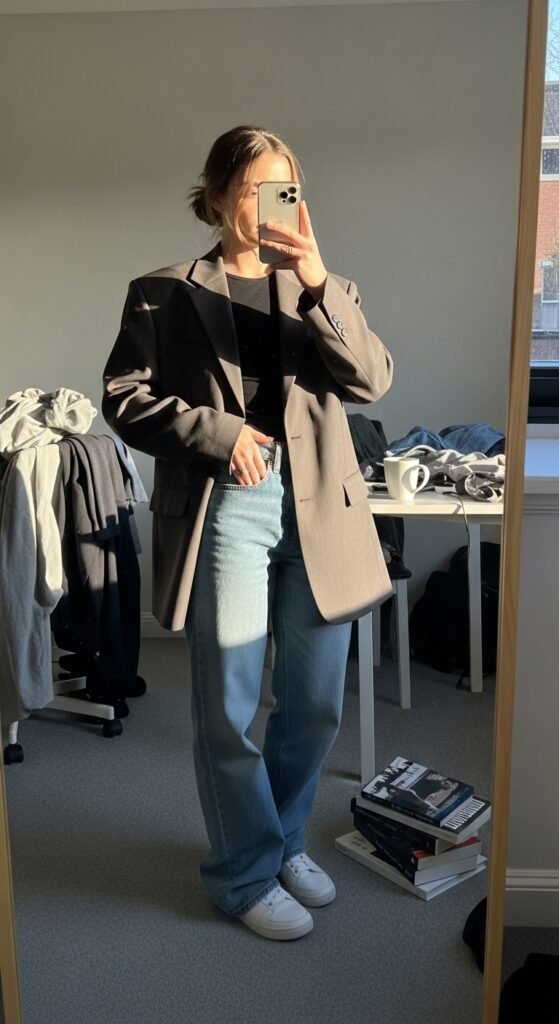 7. Blazer + Baggy Jeans (Smart Casual Look) 🧥