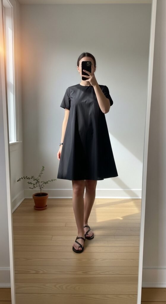 4. Black Poplin Dress + Minimal Sandals 🕊️