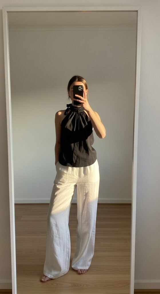 6. Black Halter Top + Linen Trousers 🖤