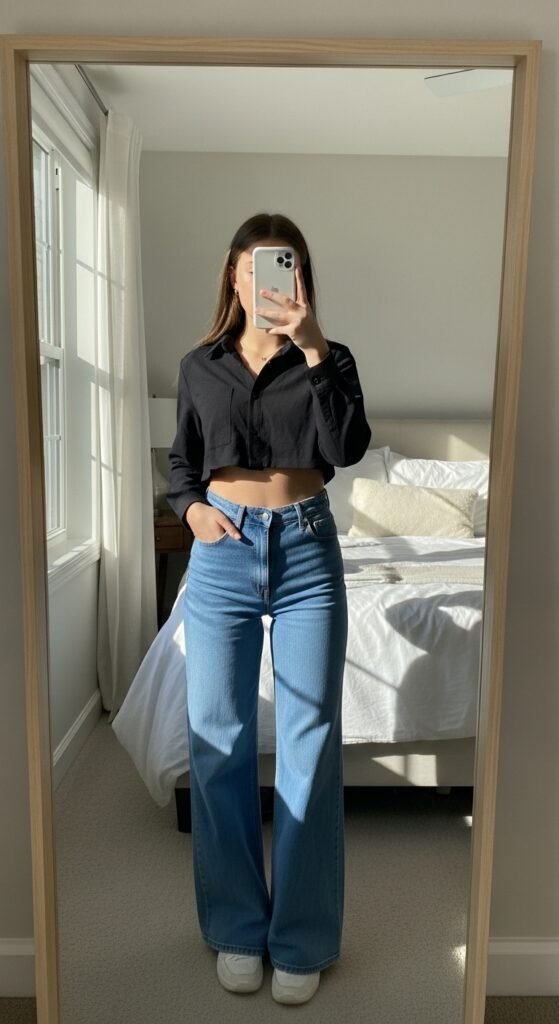 5. Cropped Button-Down + High-Waisted Wide-Leg Pants ⚡
