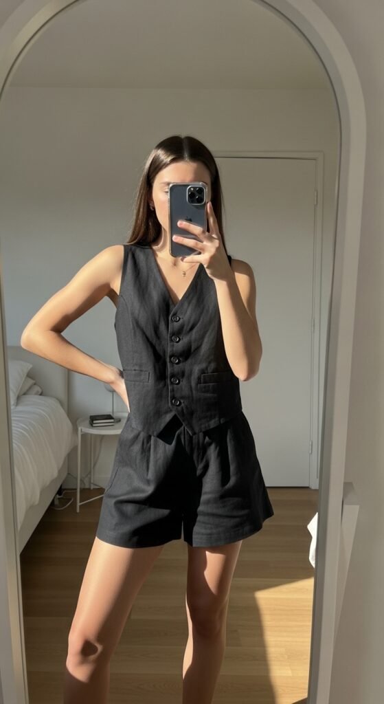 1. Black Linen Vest + Matching Shorts 🖤