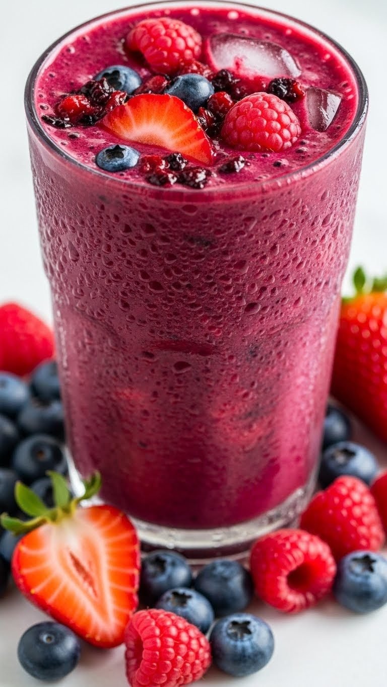 Raspberries or blackberries contribute fiber and deepen the berry flavor, helping the drink feel satisfying.