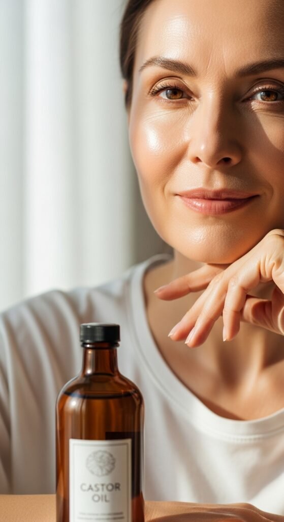 Consistent use of castor oil can give the skin a healthy, natural glow. Well-hydrated skin reflects light better, making the complexion appear smoother and more radiant without makeup.