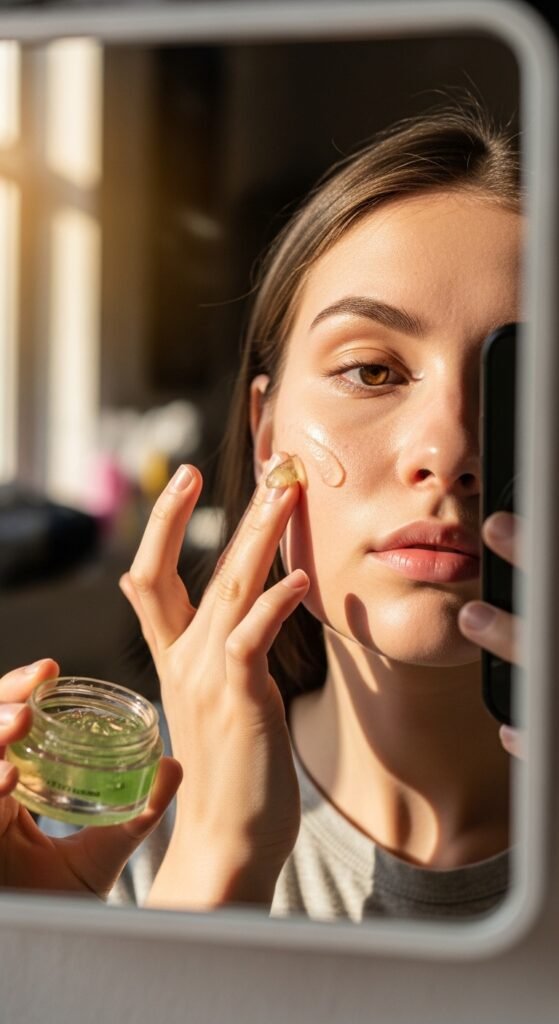 👉 Dab aloe vera directly on pimples before bed instead of heavy spot treatments.